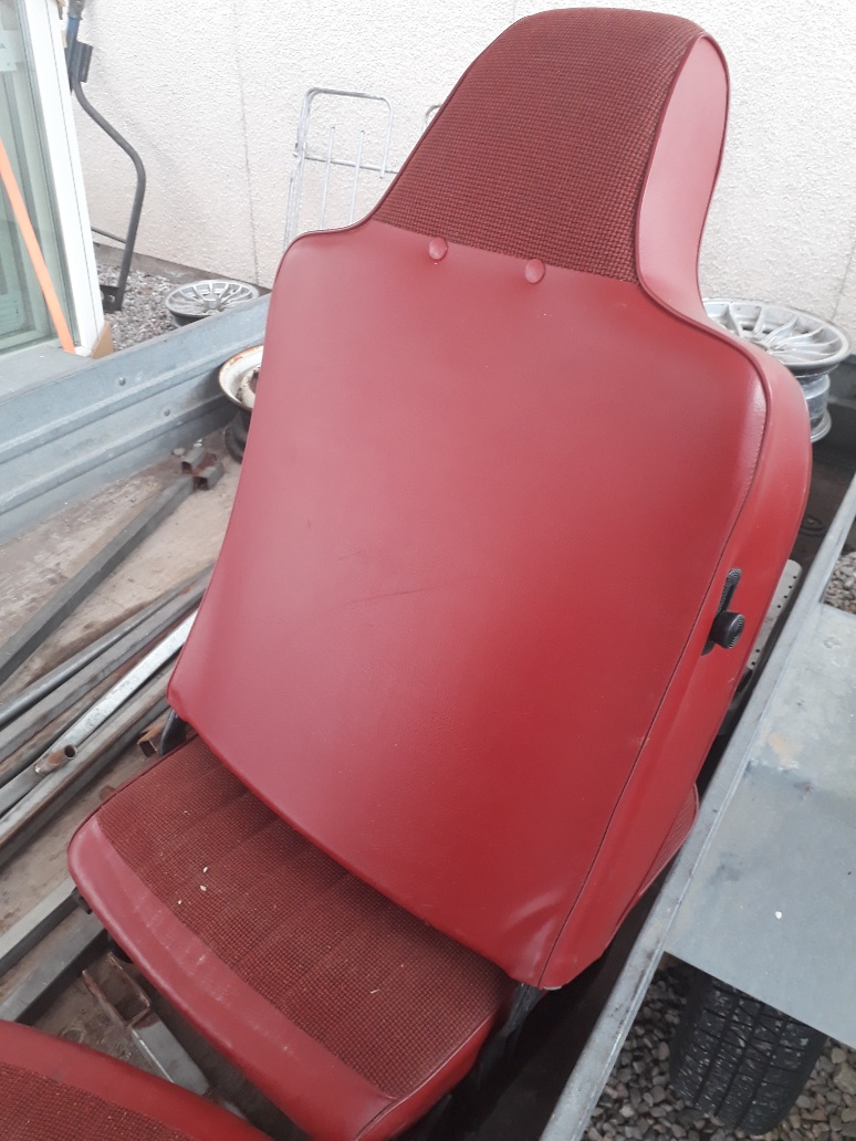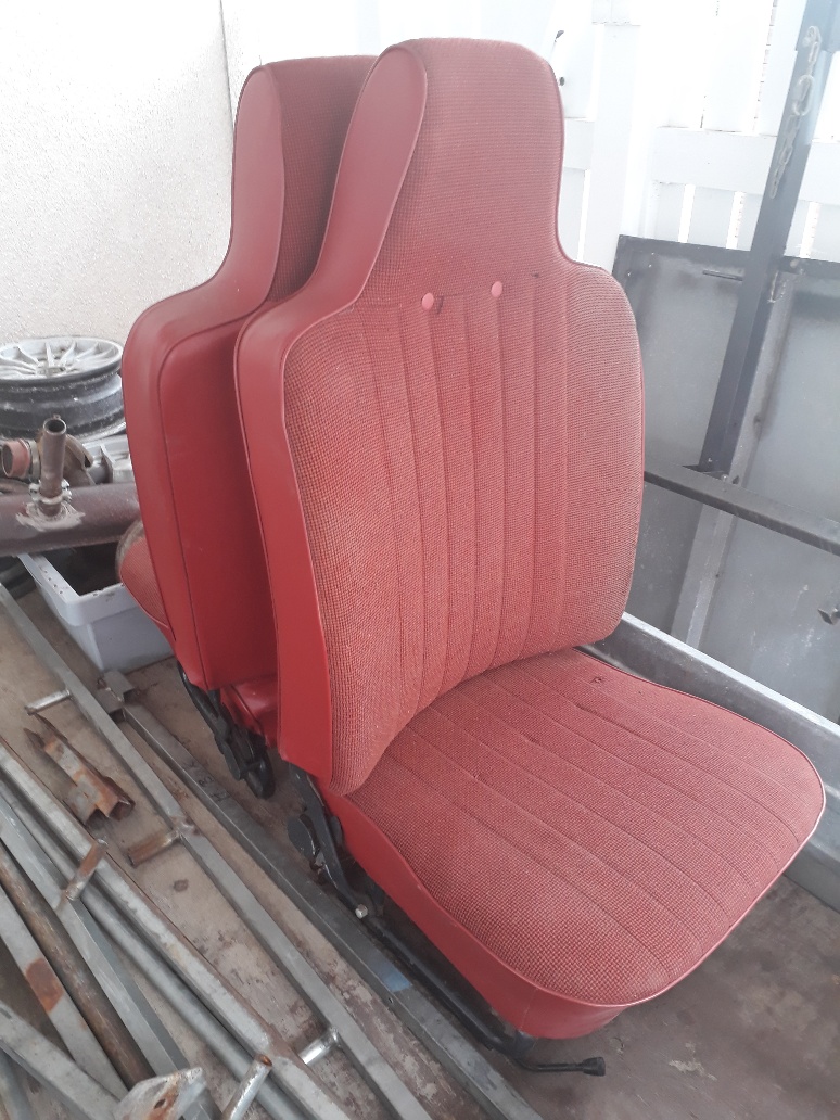 2 st röda stolar med hög rygg i ok skick, finns nån liten skada (se bild) Kan tas med till BRC Tierp i helgen om betalning är gjord senast torsdag kväll.