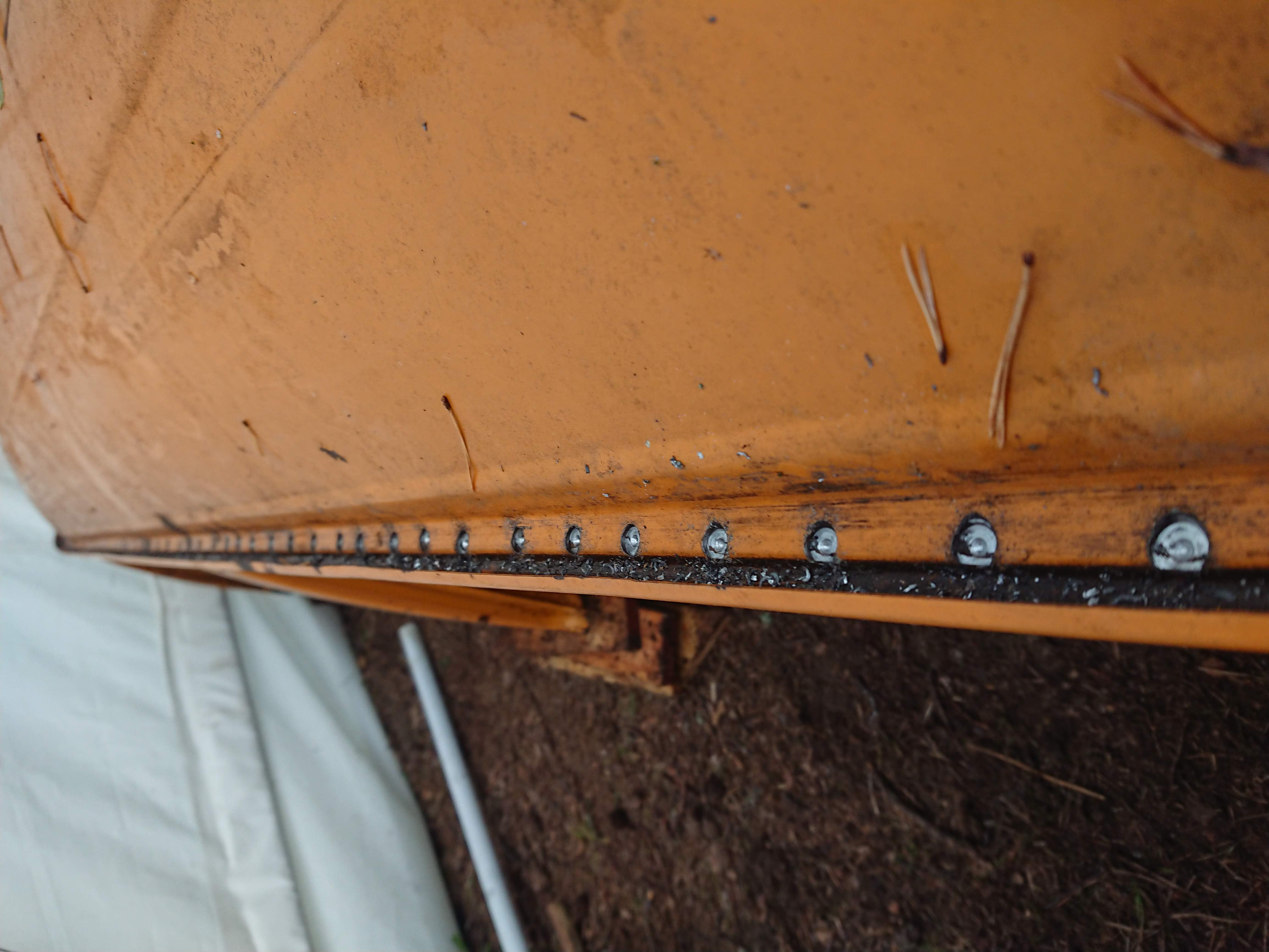 1. Skinnet på taket. Alltså själva plåten. Sitter fast med lite lim mot bågarna. Punktat/limmat ute på kanterna, vid skinnets fals?