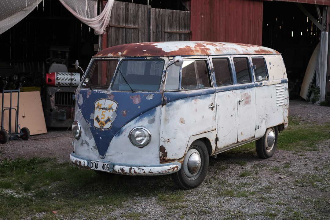 Till poängen: Min granne/kompis Fabian har ärvt en ungefär likadan sådan fast röd nedtill och svart upptill. Möjligt att den har lite fönster på taket också, men den är ganska skruttig. Den har stått inne i ett garage i ungefär 30-40 år nu och vi undrar lite vad vi bör göra med den!?