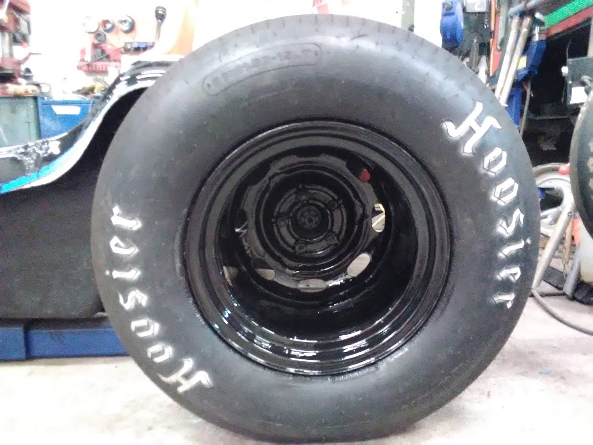 Fälgar klara o lackade, bilen står på egna hjul det närmar sig prov körning, jag måste sänka framvagnen lite det är 5 tum till backen fram det ska vara 2 ,bilder kommer snart