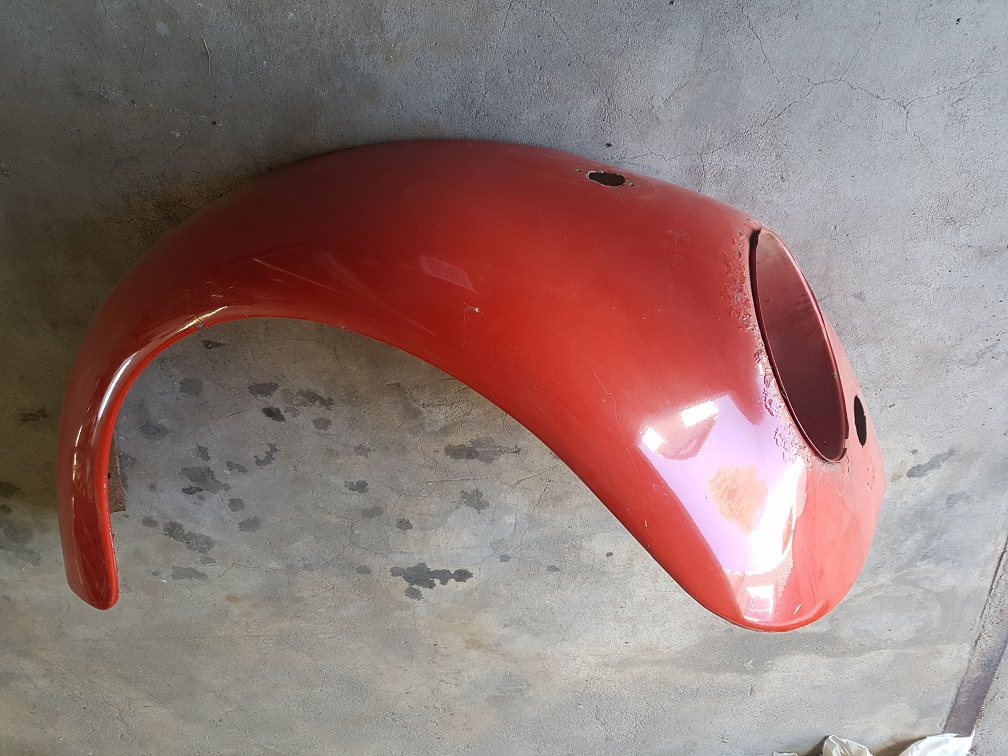 -Framskärm höger 60-67, ej original, med uppkapat hål för blinkers, rost runt lyktsarg 200,-