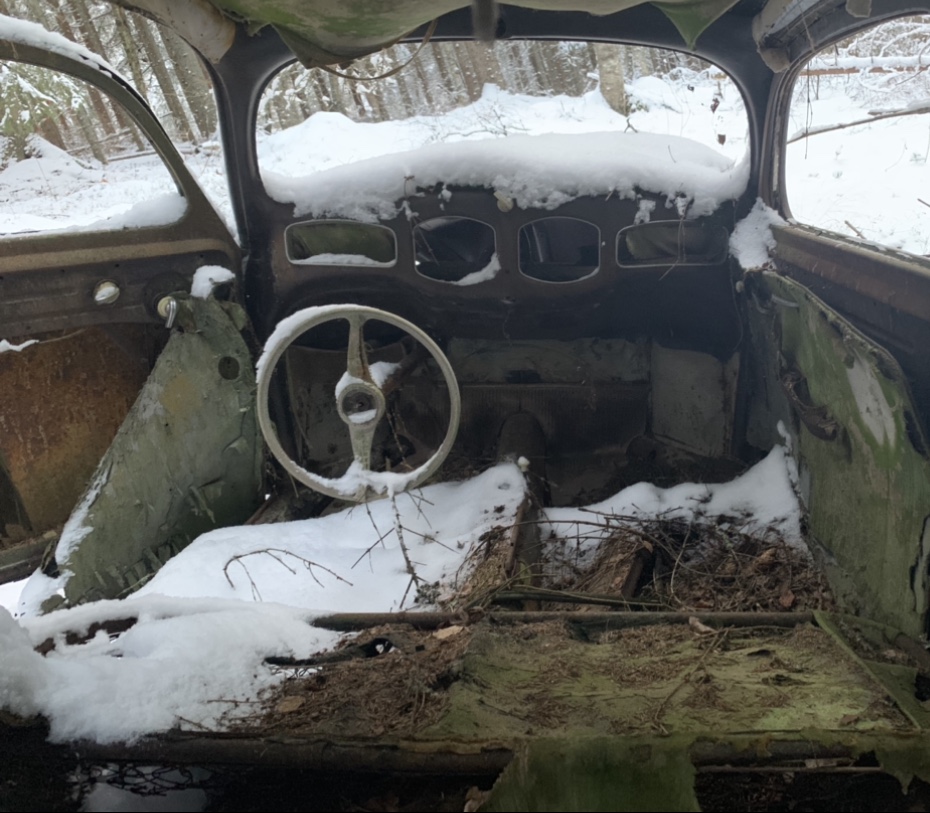 Köpte en februari 1950 bubbla igår. Har stått på samma ställe sedan sent 60 eller tidigt70-tal enligt ägarn. Verkar vara Bordeaux röd orginalfärg om omlackad svart någon gång. Har klarat sig oförskämt bra i karossen men plattan är såklart rostig. Mekaniska bromsar och allt man kan önska sig