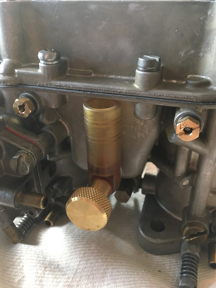 På den första förgasaren så gick det utan problem. På den andra så blev nivån för hög oavsett vad jag gjorde. Klurade länge på detta och fick sedan tipset att skruven för siktglaset kan vara för lång och låsa flottören. Så var fallet och med några brickor emellan så fick jag ordning på förgasare nummer två också.