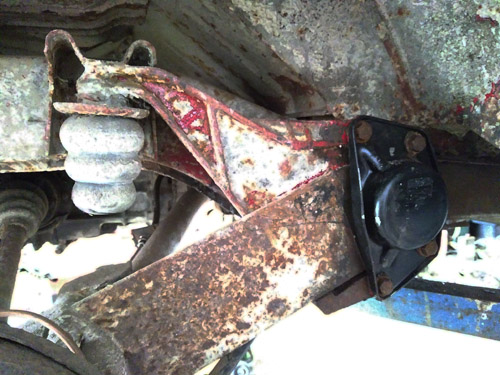 Innan jag går vidare gör jag klart höger ramskena också som i princip var lika slut den...Kämpigt men bussen skall ut på vägen igen, det har jag gett mig tusan på:)