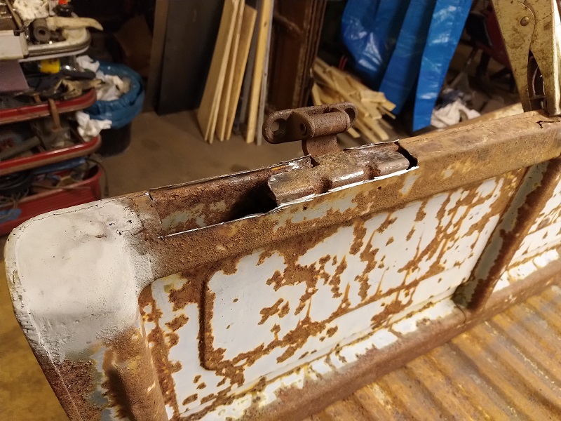 Med den biten avklarad så var det dags att rensa de gamla gångjärnen från rostrester och sedan göra nya förstärkningsplåtar enligt original.