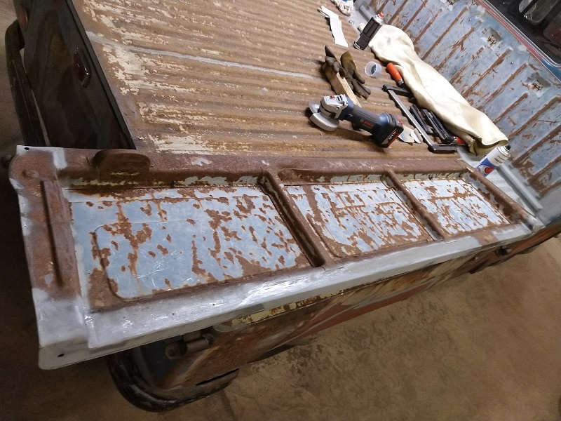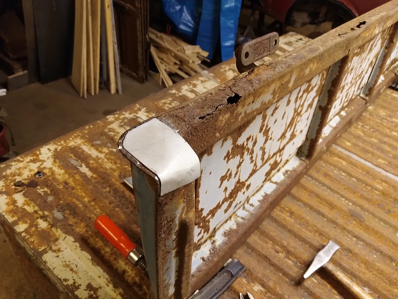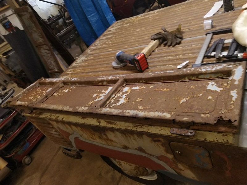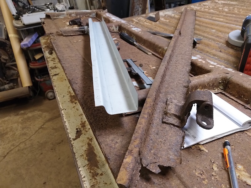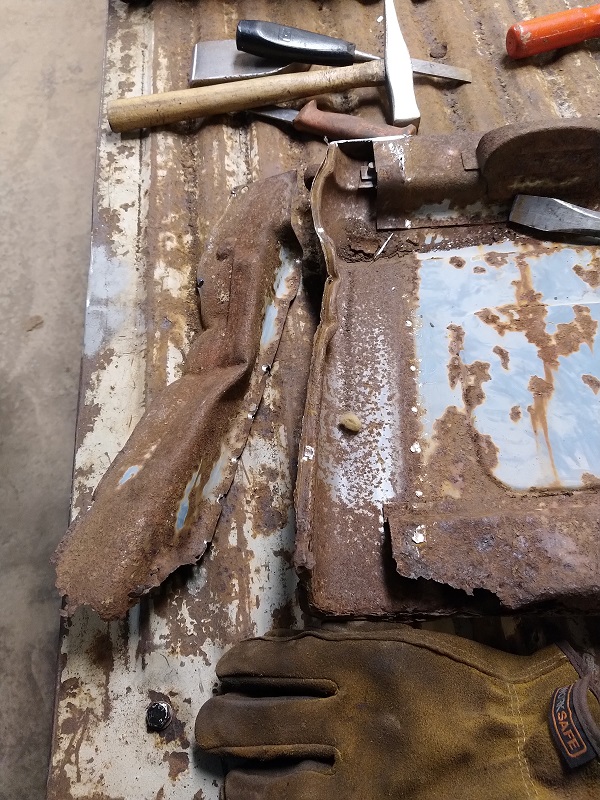 Med den biten avklarad så var det dags att rensa de gamla gångjärnen från rostrester och sedan göra nya förstärkningsplåtar enligt original.