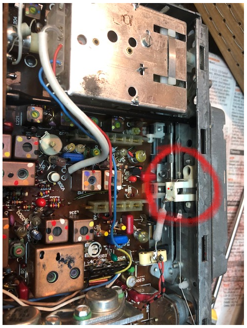 Jag behöver byta glödlampan till skalan på en gammal 12 V Blaupunkt. Hur gör man? Den är inringad på bilden och sockeln är fastlödd i själva kortet. Kan man sprätta bort hela skalmodulen på framsidan?