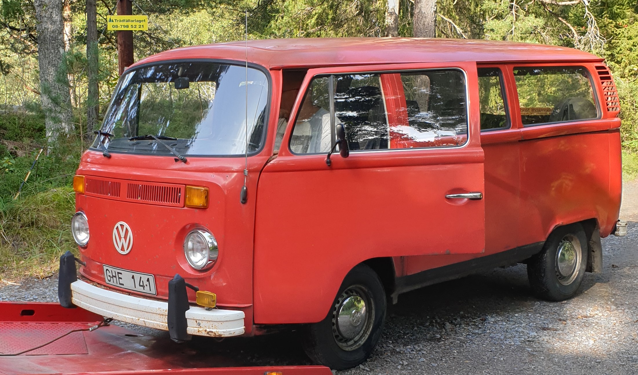 Registreringsnummer är GHE 141 ,VW folkvagnsbuss Late Bay från 77.