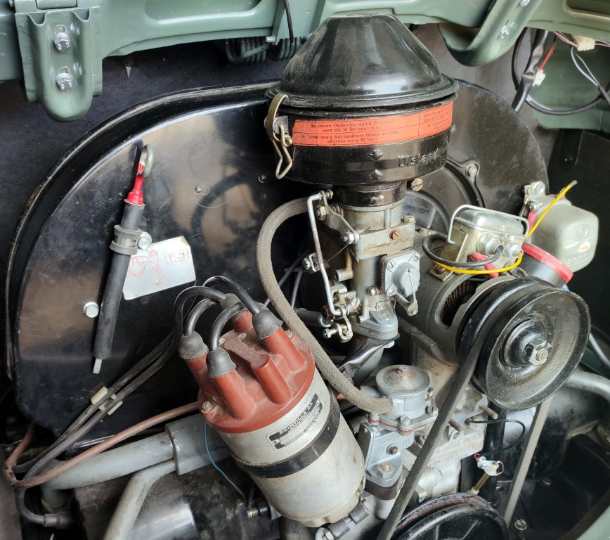 Motorn är en 34hk 64 brandspruta, och man bytte väl sticka vid den tiden för man lutade på motorn i bilen?