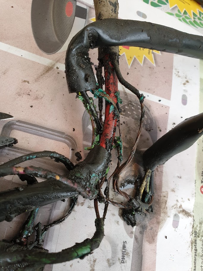 Angående plinkande lampor typ julgran, så här såg mina kablar ut. Ett under att den gick!