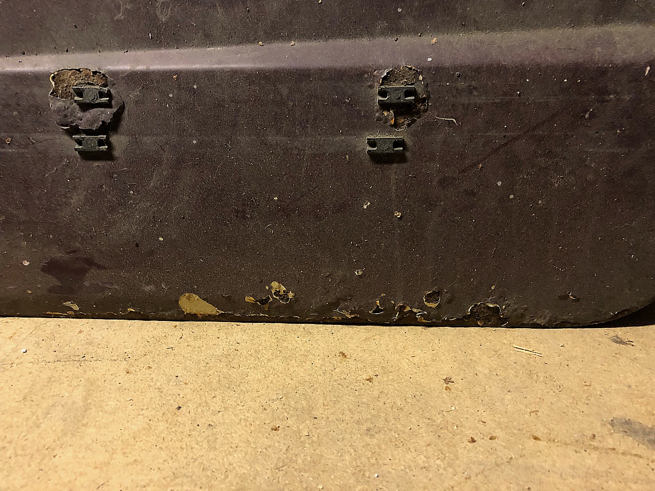 Ok skick, lite rost, men klart räddningsbar. Komplett med handtag och ruta.