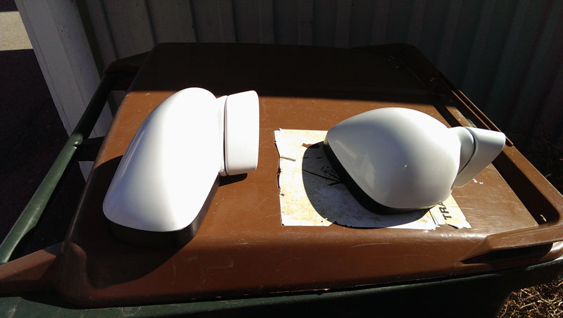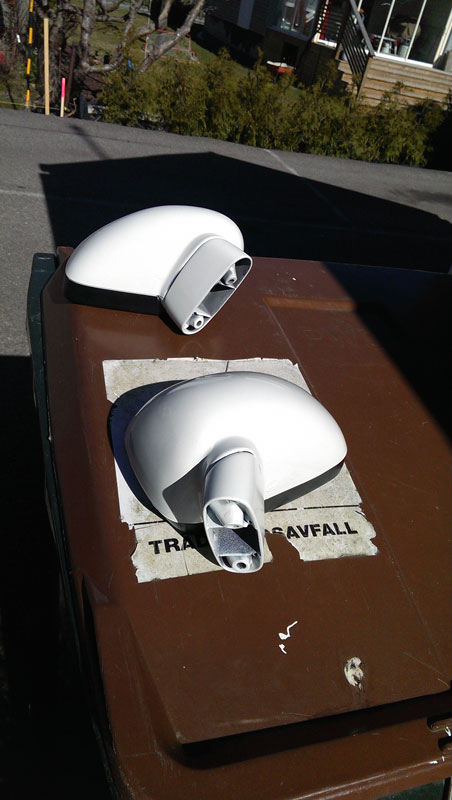 Jackson är åter hemma och Corrado-backspeglarna har kommit på plats. Visst får de ett litet dropp på varje sida om man inte gör en adapterplatta, men det accepterar jag för den vinst i utseende det blir ändå.