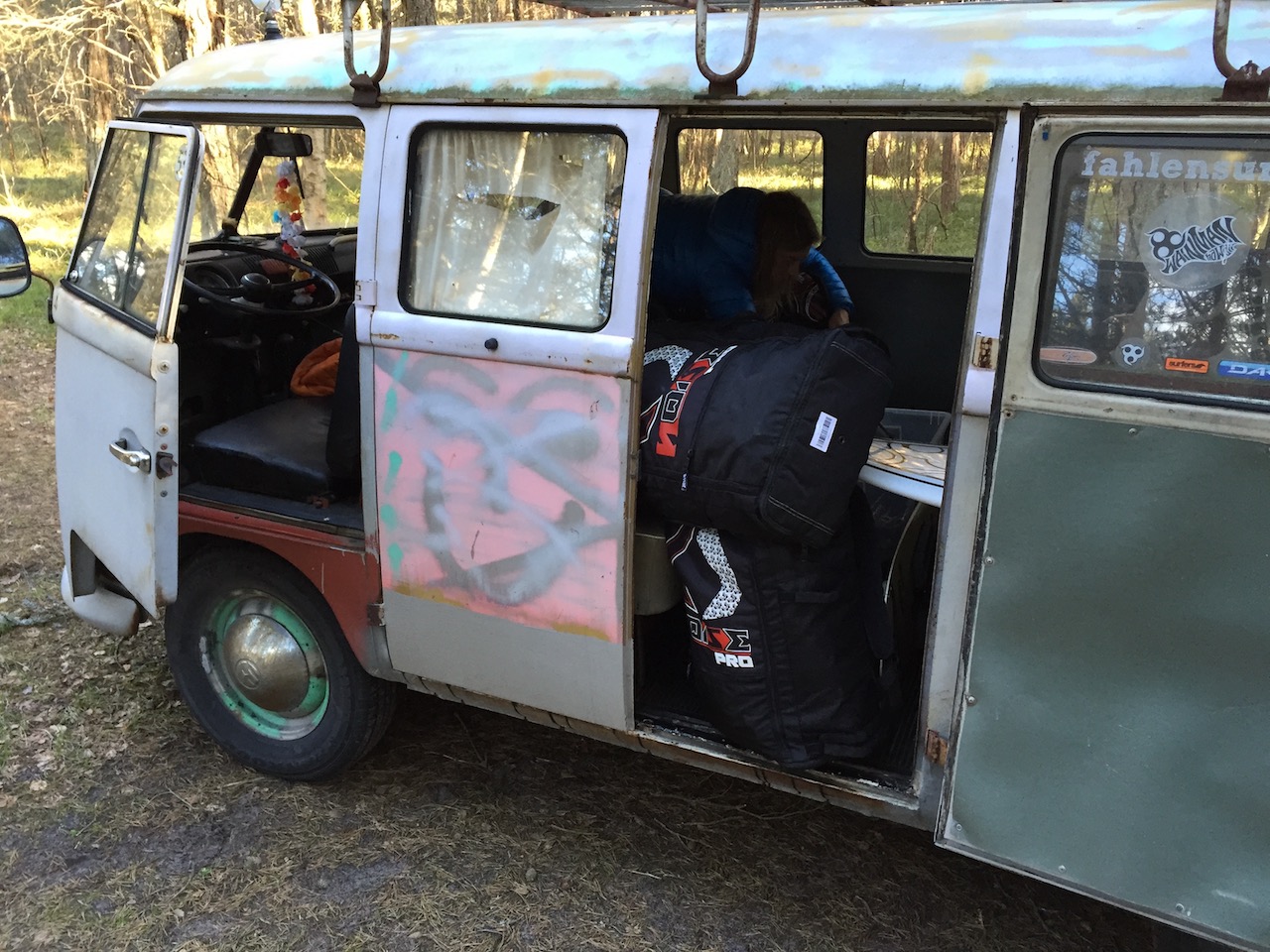 De som känner mig vet att jag skrämde liv i en splitbuss från -64 för så där 10-12 år sedan - det var en påskvecka i garaget och sen till besiktningen...med godkänt resultat. Namnet fick bilen av de glada besiktningskillarna i Orminge. Det var inte ett snyggt men garanterat spackelfritt ekipage som sedan trafikerade Fårö och Gotland med lånat takräcke, surfbrädor på taket och 12" bas i bagaget under ca 10 år - ofta till medtrafikanternas glädje - och ibland fasa...