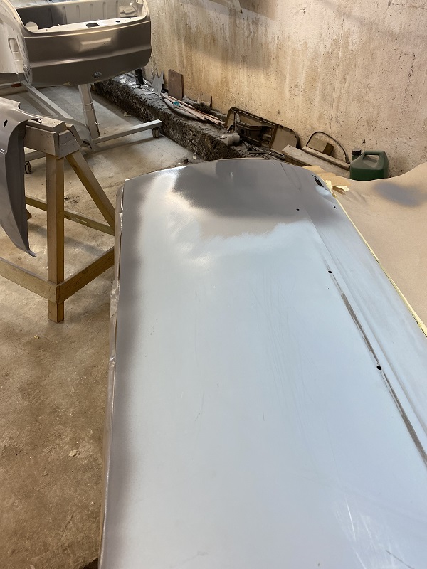 Fortsatte att lacka klart karossen, gjorde det i två steg, invändigt, under först sedan resten på "utsidan".