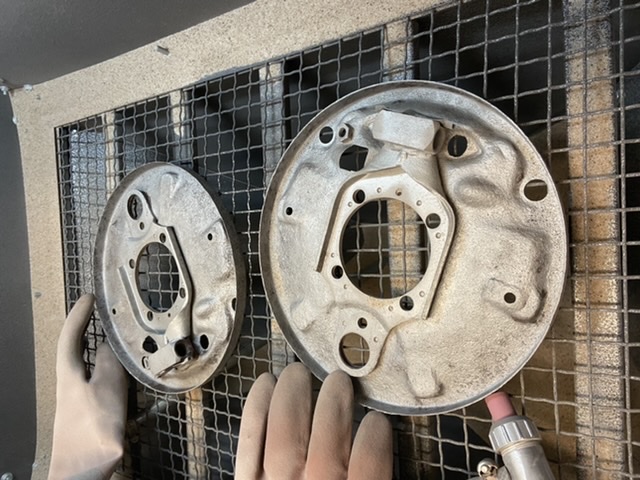 Började att blästra innerskärmarna och sittbrunnen men upptäckte att plåten var för dålig på sina ställen och det var jättemånga små lappningar i plåten som dök upp så det blev en och annan plåtbit som svetsades dit men inte så konstigt då bilen nästan är 50år.