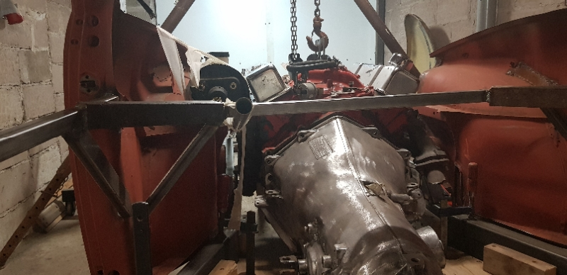 Kommer komma till det lite längre fram, men ja den får plats, i princip. Om man byter vattenpumpen till en tex elektrisk med mindre byggande mått framåt och byter plats på generatorn och förändrar framstolarna bakåt. (troligen får ingen baksätet plats då).