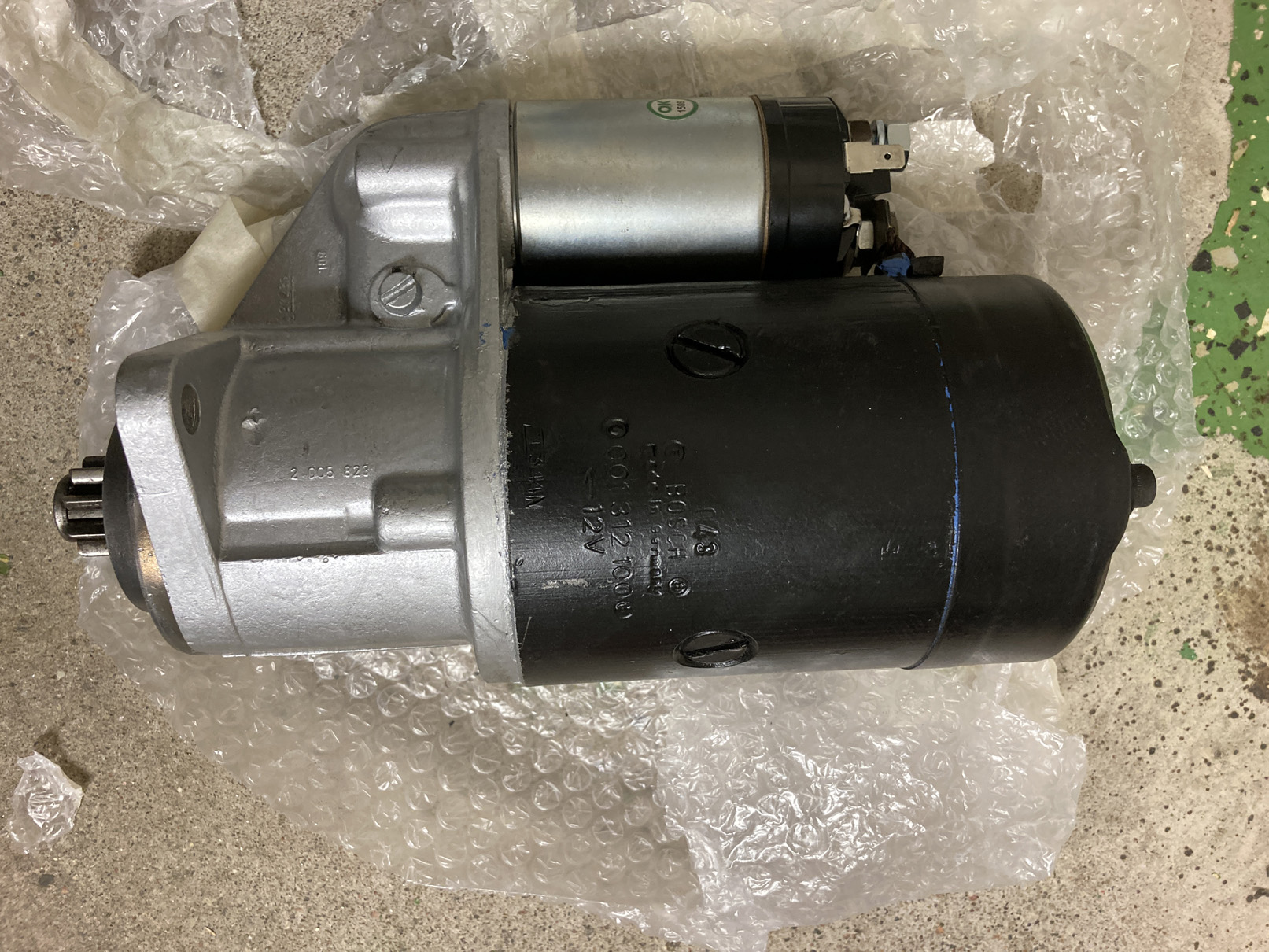 Här är äntligen låda och motor hopsatta! Startmotorn renoverade jag för ett tag sedan, gott att få den på plats! Kablarna också, det går en pluskabel under bilen som ska på där också när motorn är monterad.