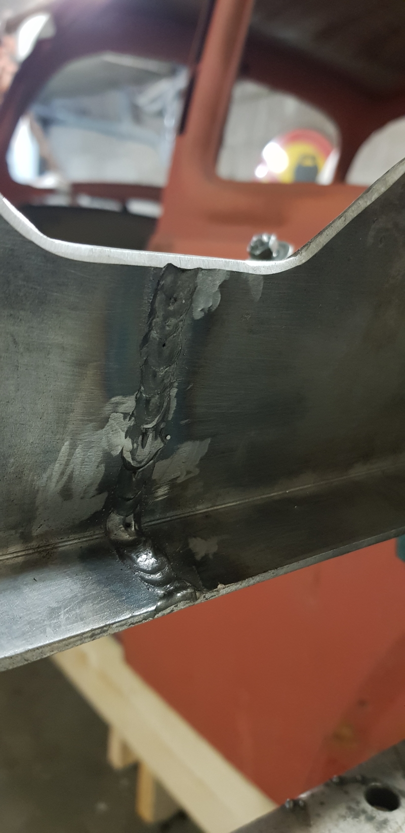 Gör en liten miss, körde med 0.8 tråden, vilket jag kommer på lite sent , fick lite onödigt slag i plåten som följd.  ICQ/bu