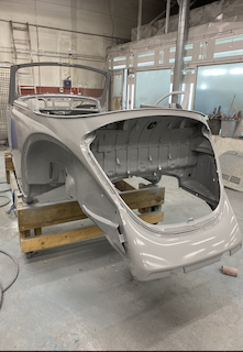 Min lackerare har tyvärr gått och fått en fraktur i sin handled så det kommer att dröja ett par månader innan karossen är lackad men jag behöver inte vara orolig, det finns delar kvar att pula med. Lägger upp några bilder på första primern på karossen.