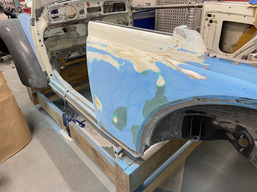Karossen är just nu iväg för spackling och ny lack. Jag har velat länge om jag skulle lacka med den pastel vita L90D original färgen eller den blåa Gemini blue L96E färg jag alltid har velat ha på min tilltänkta bubbla cab. Nu när hela karossen kan målas precis överallt så föll valet på den blåa färgen då det också är en originalfärg åren 71-72 , då jag känner att jag vill ha bubblan så original det går.