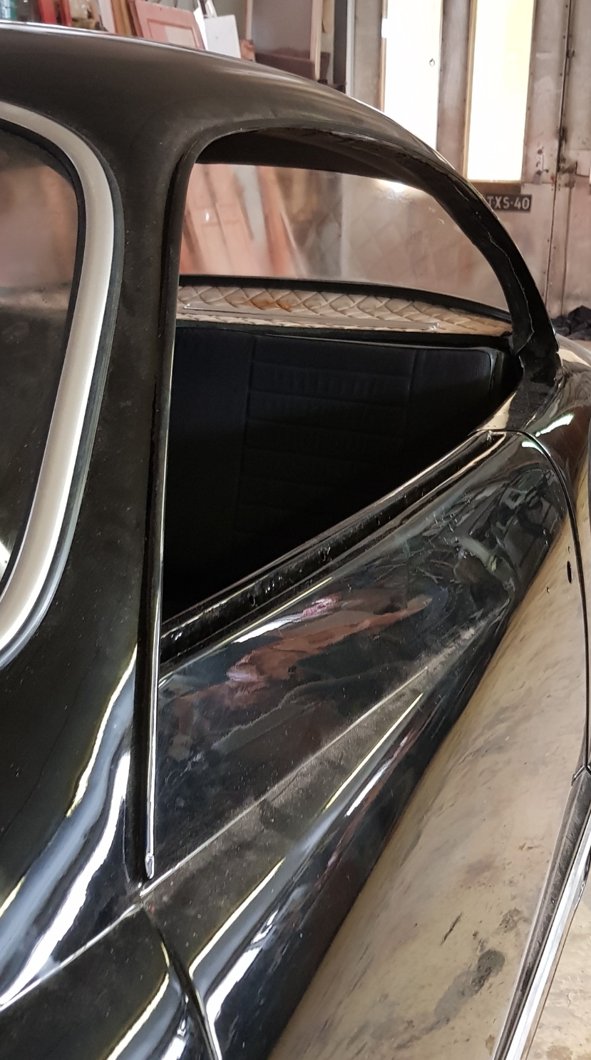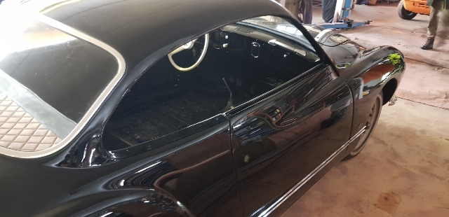 En lowlight ghia ska ha en plåtkant/plåtlist mitt i hålet för bakre sidorutan, där listen till den fasta sidorutan ska sitta fast. Den plåtbiten ser ut att fattas på din kompis bil?