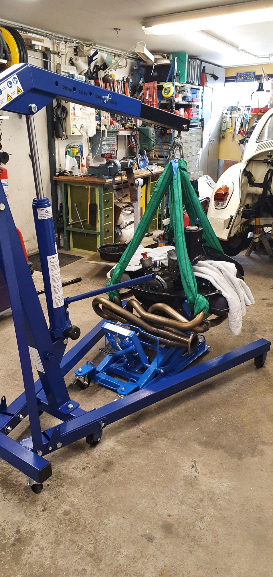Införskaffade verkstadskran och mc lyft.