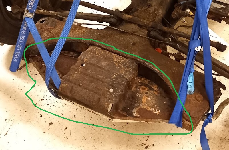 var i princip utan botten. Även "gaffeln", där växellådsfästena sitter, var svårt angripen nertill.