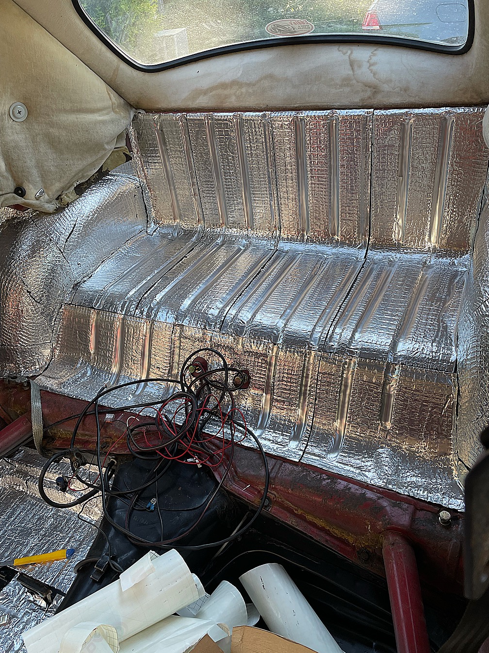 Jobbade på lite i dag i sommarvärmen. Det blir lite NASA känsla med all alufolie i bilen.