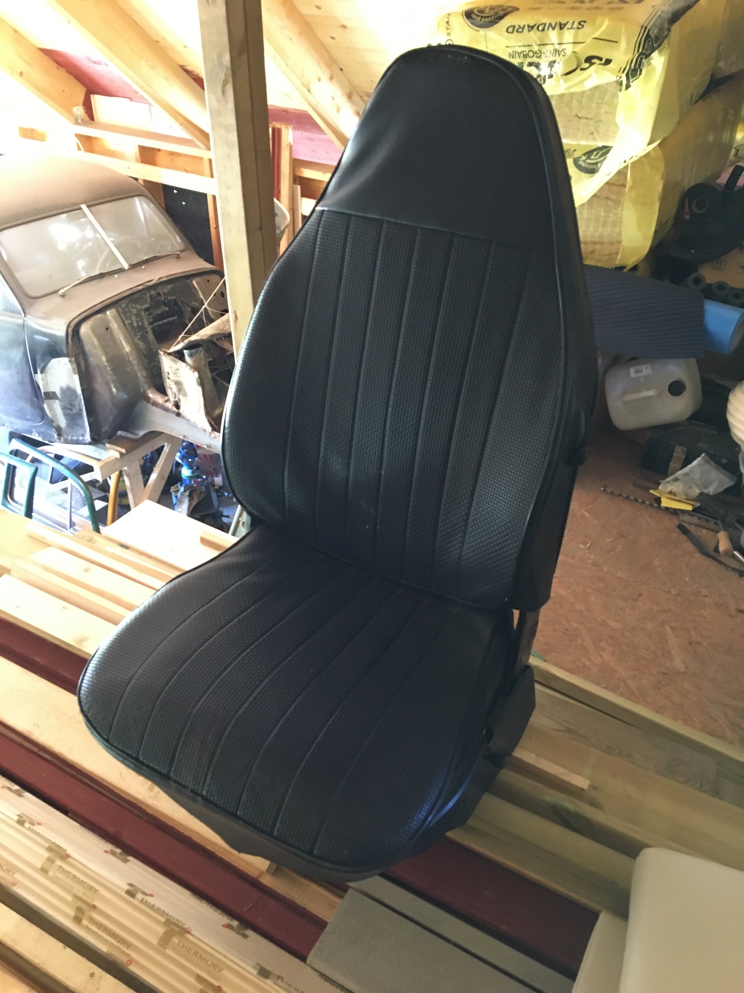 Har mörkblåa stolar till en 1303 från -73 som jag gärna vill bli av med. Det är dom med "tre ben". Bra skick. Baksoffan har jag också men den har en annan färg (ljusbrun).