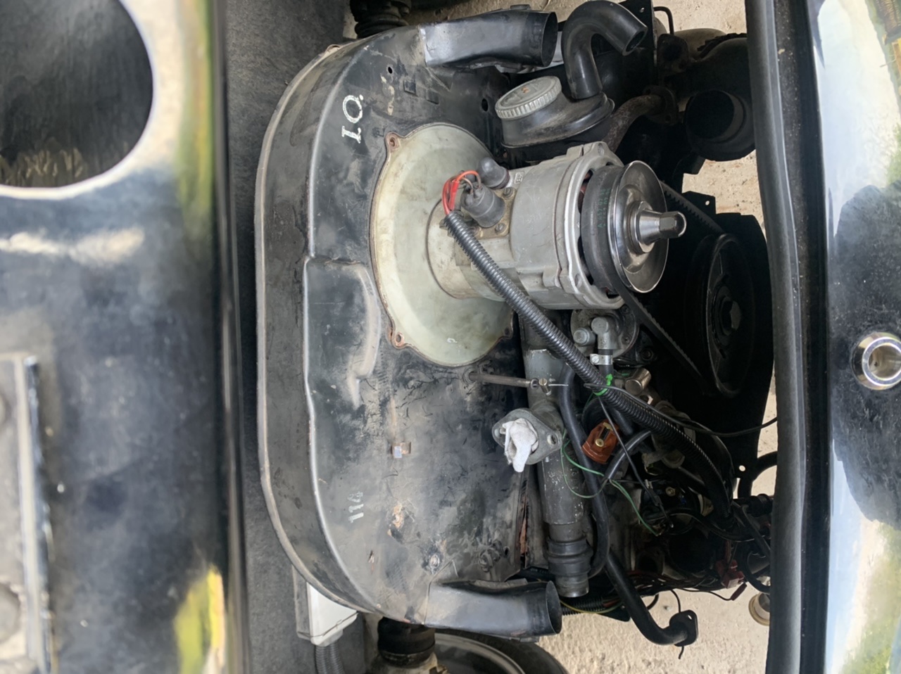 Det är en 356 Speedster Replika byggd på en 69 1300 typ 1. Insugen får inte plats pga av fläktkåpa/ kylplåtar. Nu har jag bytt till mindre kåpa, dock så tar nu insugen emot kylplåten mot tändstiften?Kanske mindre insugsrör kan fungera om det finns att köpa? (Jag har även börjat slipa på insugsröret utan större framgång)