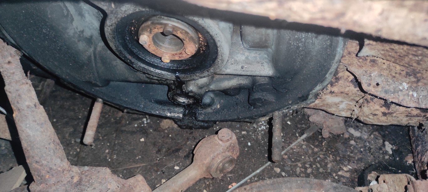 Jodå, där är de, indränkta i kladd vilket får en att tro att den kanske suttit i bubbla eller splittbuss? Hålen borde inte vara totalt igengeggade om det suttit skruv där.