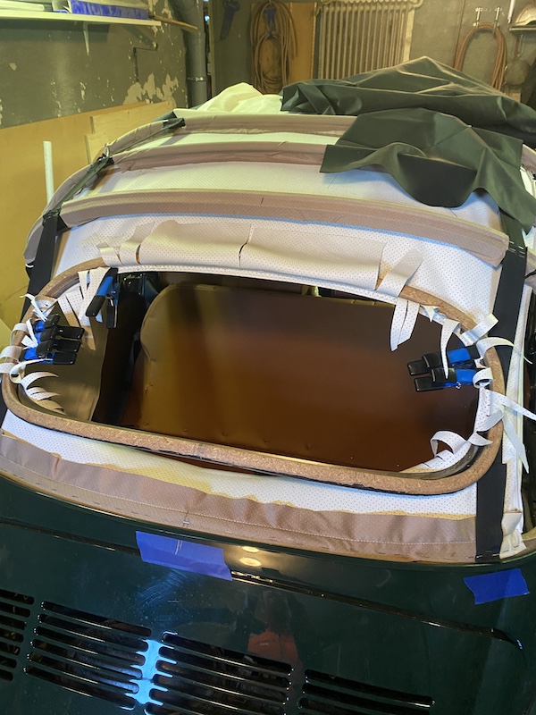 Men det var bara att ta tag i det, limmade sedan fast innertaket i ramen, bit för bit så det satt, klämmor, klämmor och åter klämmor.