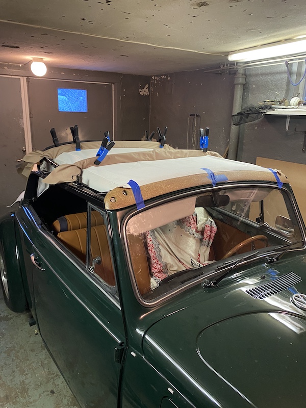 Men det var bara att ta tag i det, limmade sedan fast innertaket i ramen, bit för bit så det satt, klämmor, klämmor och åter klämmor.