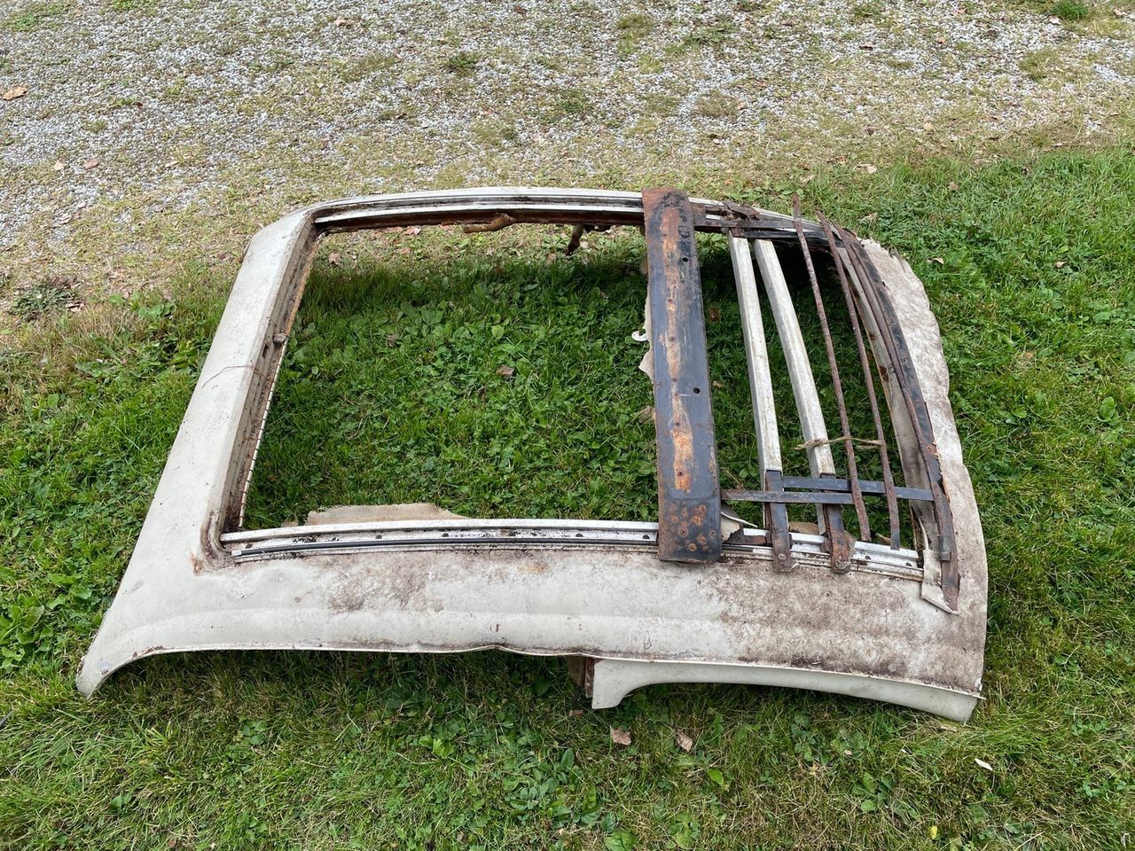 En bil från skogen. Börja jobba så det blir ordning på den igen. Jag misstänker att det är många timmar att lägga ner på rostlagning och många delar att leta rätt på. Något som lätt kan ta några år. Jag vet! Medans hinner man fundera och ändra beslut flera gånger. Kanske något dyker upp under tiden. Soltaket är ju liksom något som kan läggas i sent i projektet. Mycket annat viktigare innan.