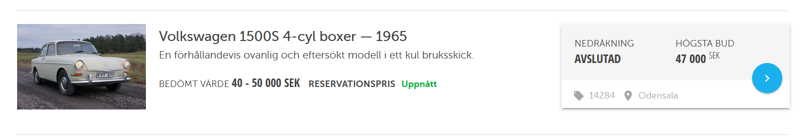Auktionen var den 9/12, och bilen bytte ägare 23/12.