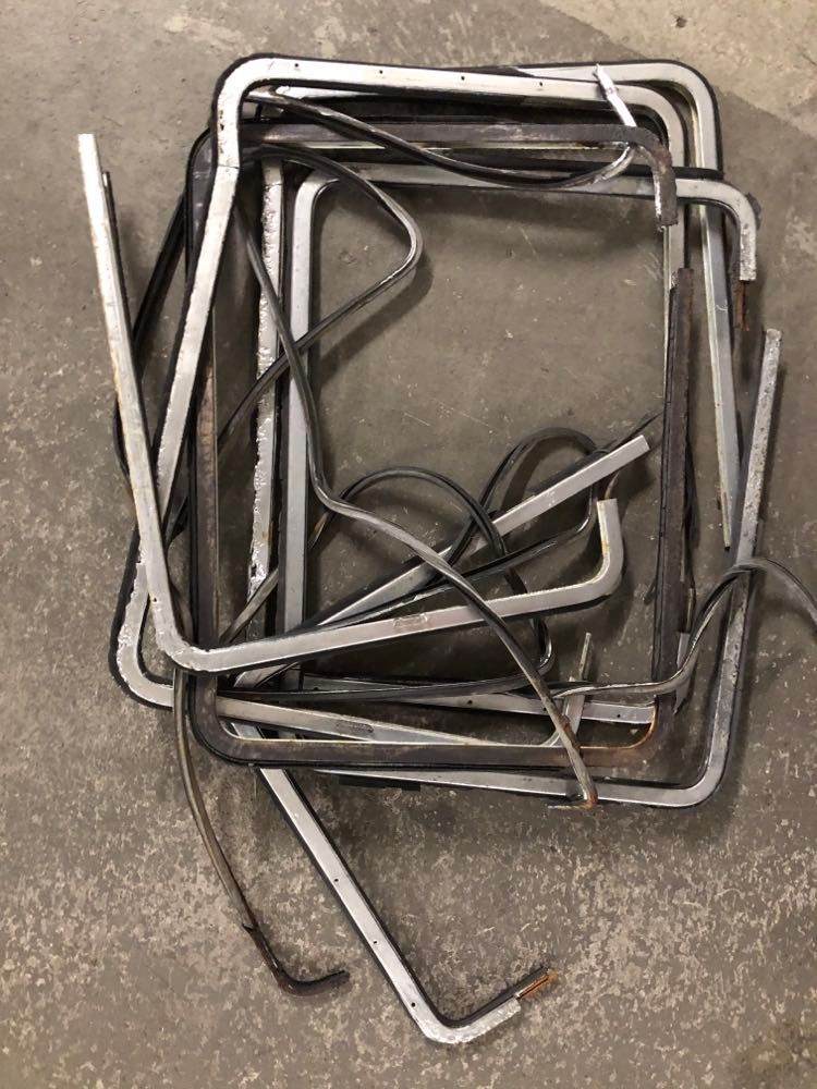 Originalramarna till pop-up sidorutor till en sambabuss 1964, rostiga men några bitar kan användas.