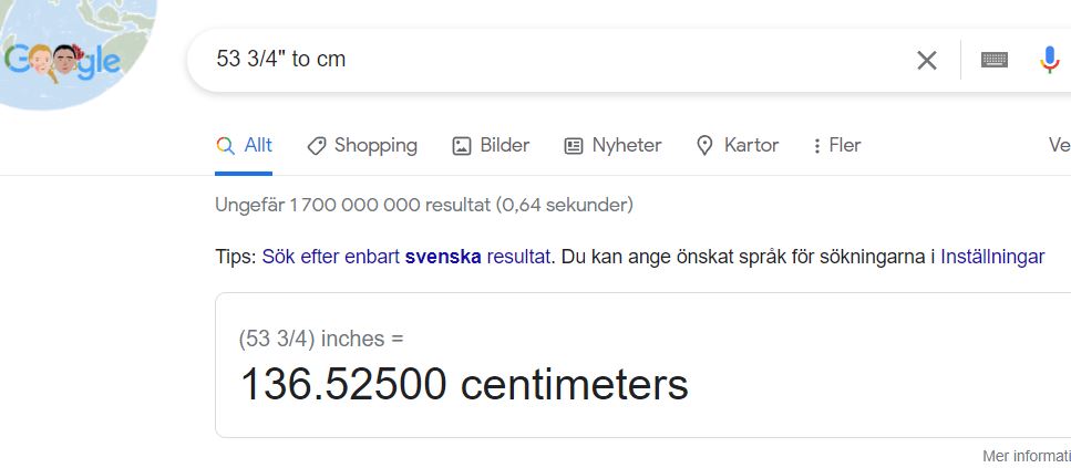 Okey tack för tum måtten...  ICQ/be  fram med kalkylator. .......