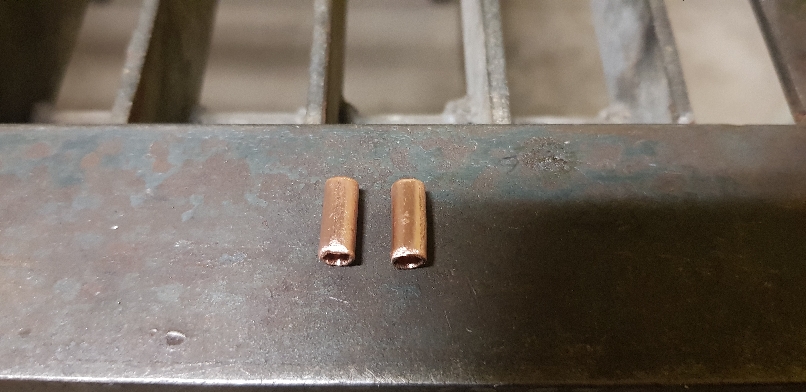 Extrasäkert hade det blivit genom att vika wire-kardelarna lite trassligt där de tittar ut ur kopparhylsorna och tenna lite på trasslet...