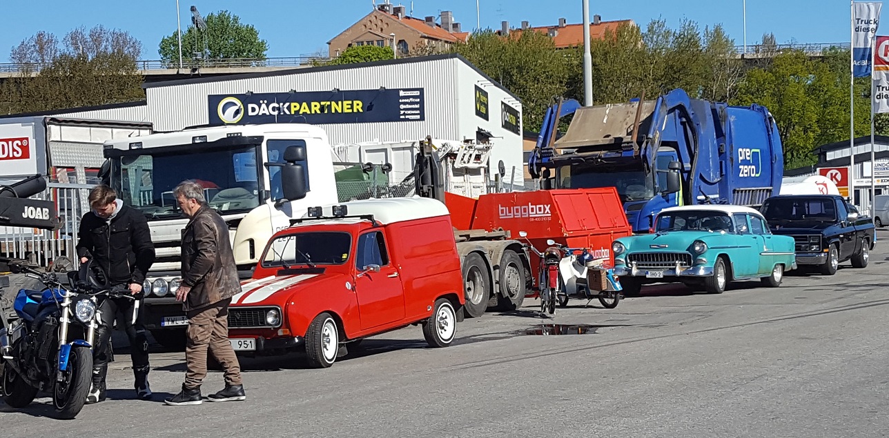 Du fick med både mig (uppe på lastbilstaket) och min moppe (Blåa Fetbruxen med orange hjälm på flaket) ICQ/ag
