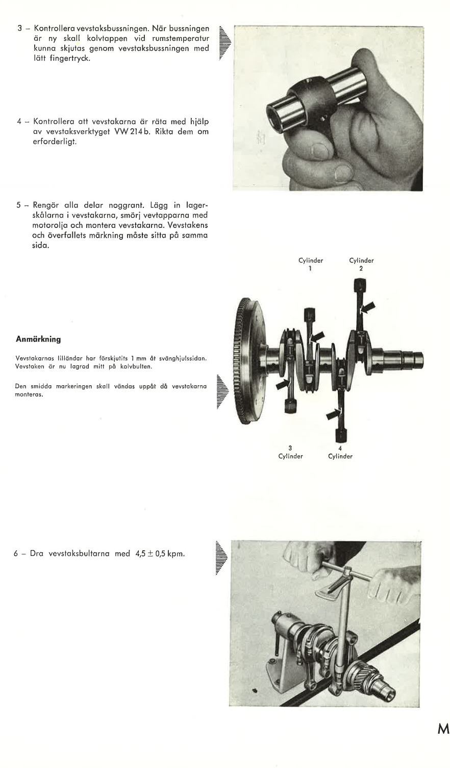 3 - Kontrollera att vevstakarna är raka...Vid samma bild som du visar - fast vänd åt andra hållet - står: