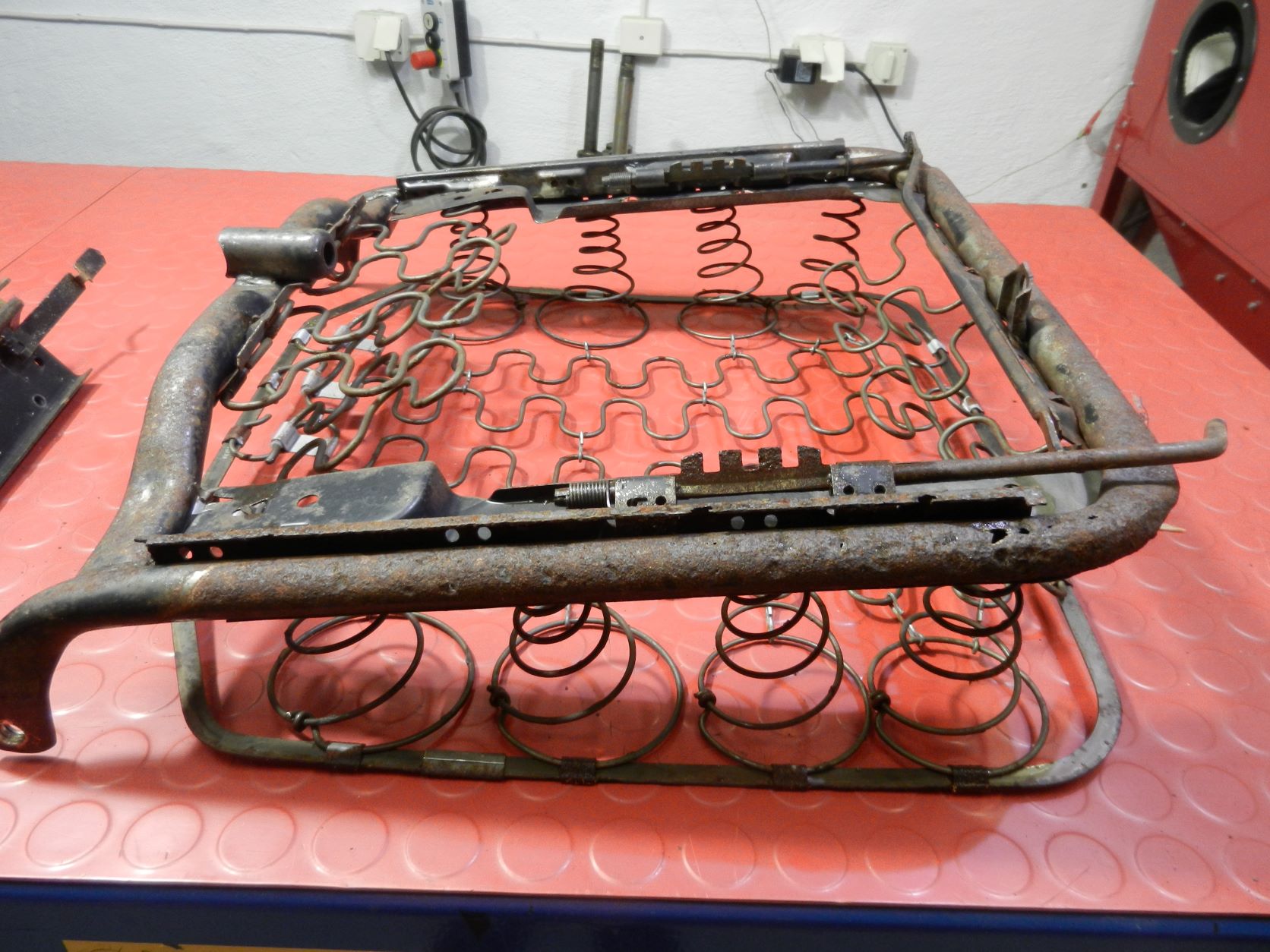 Dessvärre hade vrakets förardörr varit öppen under lång tid och därför är nedre delen av sätesramen rostig på sidan mot dörren.