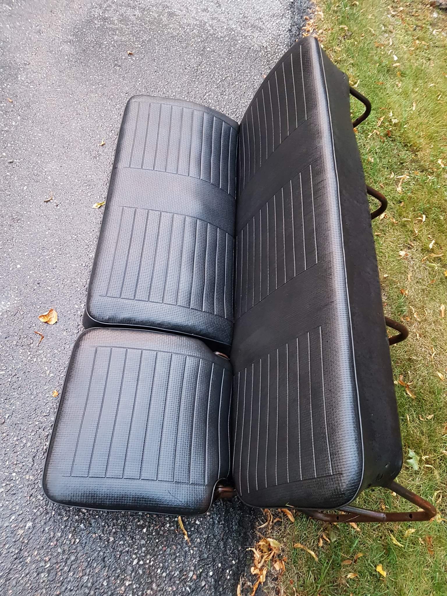 Hej, jag har en svart mellansoffa till late bay. Den är blöt på bilderna så den ser blankare ut än vad den är. Hyfsat skick om man putsar upp den. Någon skada på hörn, rost på benställning. Jag byter den gärna mot att någon kommer och kollar lite på elen till bussen. Allt är inkopplat, behöver bara enkelt ses över av någon med vana ögon.