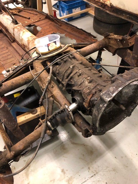 Då var det torsdagskväll igen och då var det dags för demontera bakvagn och växellåda. Växellådan är tänkt att öppnas lite längre fram och byta packningar och dyl. Har planer att byta till skivbromsar runt om men vi får se. Allt jag tar bort sparas och märks så får vi hur det blir framöver  ICQ/bs
