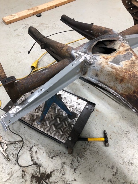 Är tanken att blästra sedan?  Annars hade det kanske varit lämpligt att slipa rent torrisions röret innan golvbakkanten hittade dit ICQ/bn viktigt att höjderna bir rätt mot karossen.. men är kanske underkant på karossen oxå helt slut troligen..??  I sådant fall är det smidigt att sedan skruva fast dom i plattan innan dom svetsas fast i karossen.. kan vara lite trixigt att få till lämpliga dörrspalter sedan.. då allt rör sig... ICQ/bu