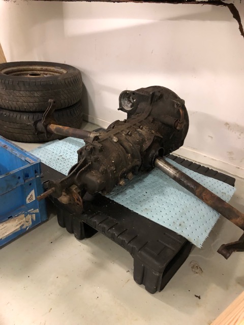 Då var det torsdagskväll igen och då var det dags för demontera bakvagn och växellåda. Växellådan är tänkt att öppnas lite längre fram och byta packningar och dyl. Har planer att byta till skivbromsar runt om men vi får se. Allt jag tar bort sparas och märks så får vi hur det blir framöver  ICQ/bs