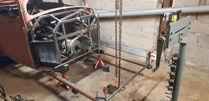 Gjorde en motsvarande platta som skulle agera infästning, och svetsa fast detta på en balk med breddmått som ramen. Massa mätande och funderande på genomslags längder, så kapades det hela till sin slutlängd och svetsades på bilen. Enkelt och godkännt ICQ/bf