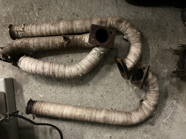 Mycket fint avgassystem för turbo til T-1 motorer . Systemet går över motorblocket , turbon liggande över lådan ..