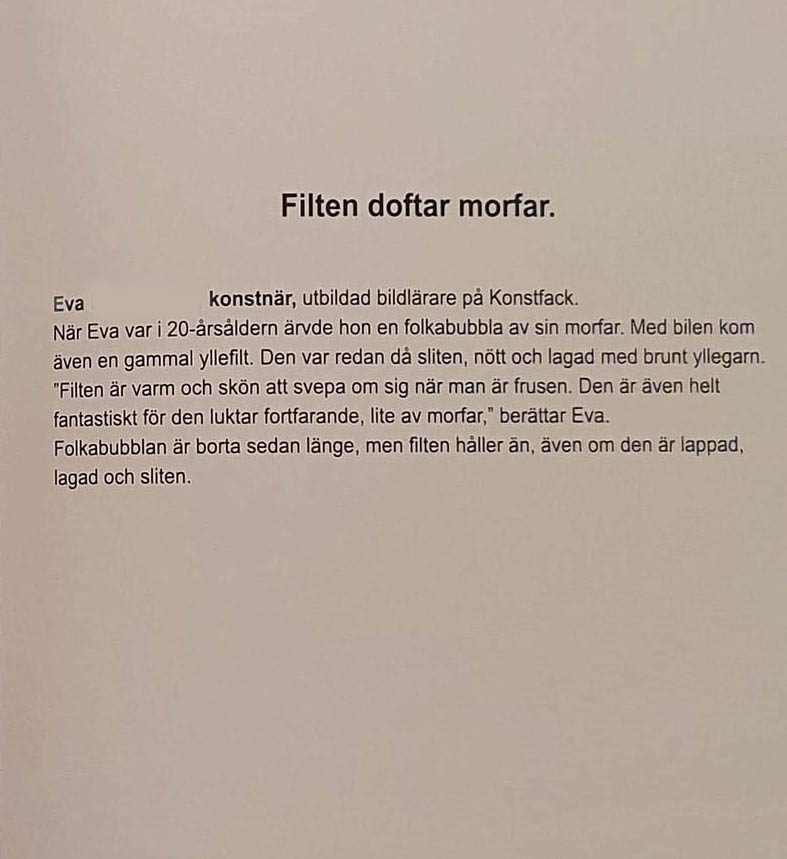 Hon visste inte att bilen fanns kvar, hon skickade mig detta som hon skrivit för många år sen om filten som doftar morfar!