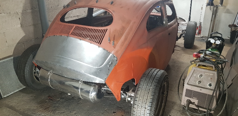 Sickar lite förstärkninga spår oxh krymper in formen i bak mot motorluckan. Sen de sedvanliga svetsandet och slipandet