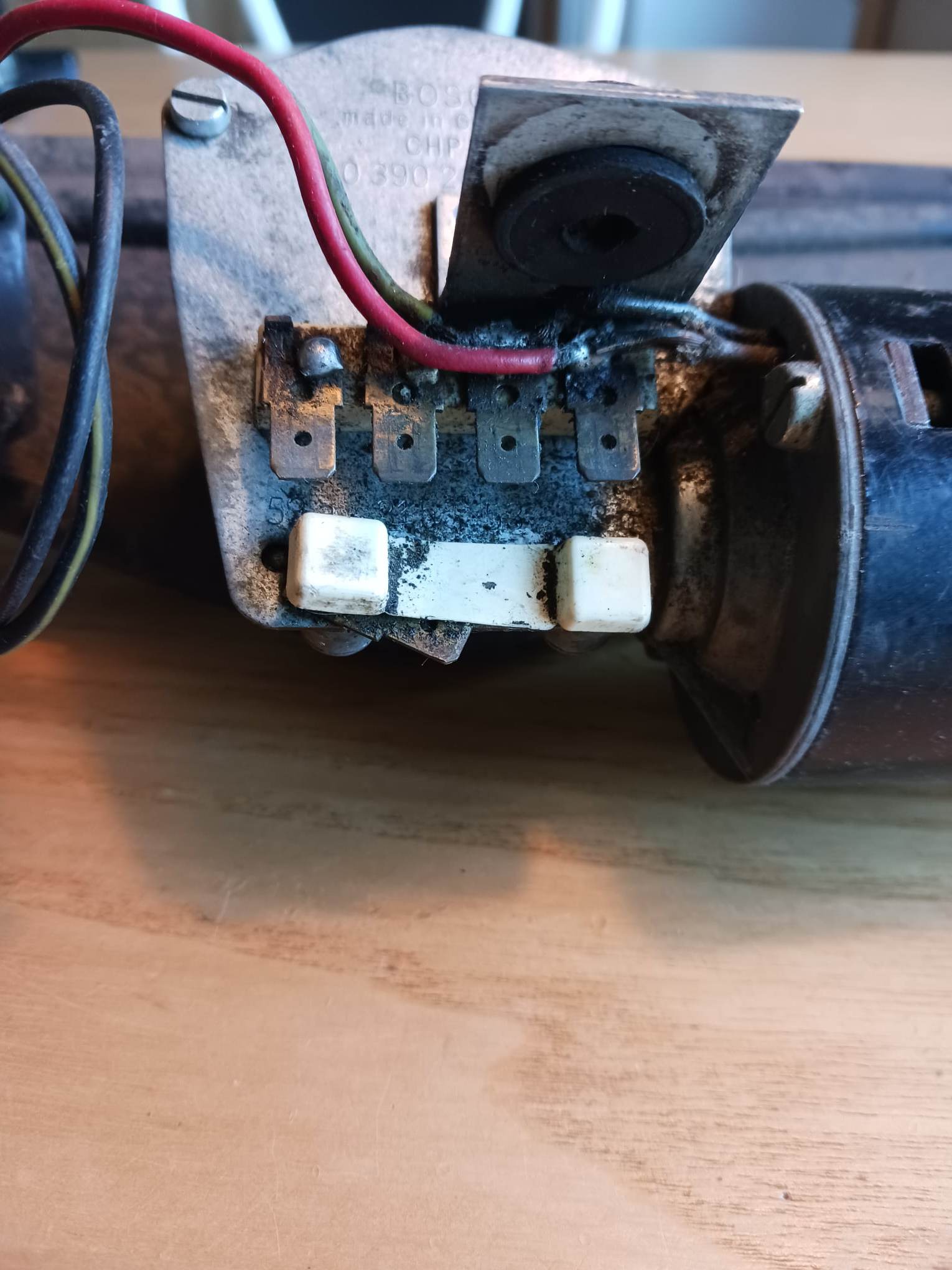 Har en -50tals 2stegs dragknapp som ska kopplas till en 12V torkarmotor som ser ut som bilderna visar.